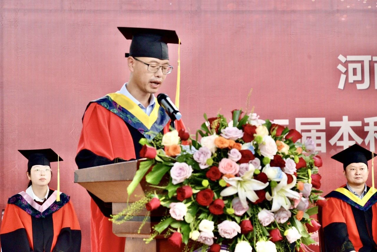 教师代表、2024级辅导员、党委办公室主任李琳寄语毕业生:希望大家继续保持学习的热情,在未来的道路上不惧挑战、勇攀高峰。