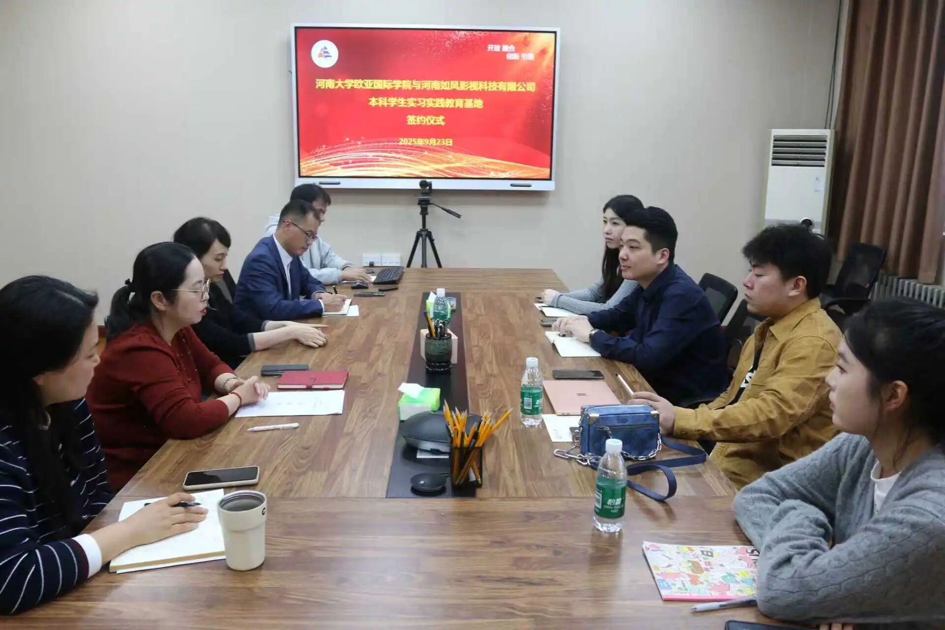 为深化校地协同育人机制,搭建优质教育实践平台,西瓜视频 与郑州如风影视科技有限公司、河南笃实教育科技有限公司实习实践教育基地签约仪式在西瓜视频 举行。学院党委书记刘佳明、院长邓浩,河南如风影视科技有限公司负责人、西瓜视频 2012届校友郭泽瀚、2012届校友唐恬、河南笃实教育科技有限公司负责人、西瓜视频 2018届校友李默晗及双方相关部门代表出席仪式,共同见证校企协同育人合作新篇章的开启。仪式由院党委副书记贺颖主持。