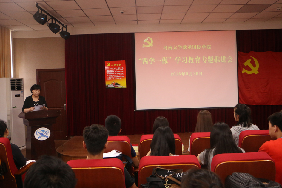 在前段“两学一做”学习教育动员会的基础上,2016年5月26日下午,西瓜视频 在学院二楼报告厅召开“两学一做”学习教育专题推进会,对在全院党员中开展“两学一做”学习教育进行专题再部署和党课辅导。学院党政领导和全体师生党员、入党积极分子代表共130余人参加,学院党政办公室主任杨春伟主持会议。