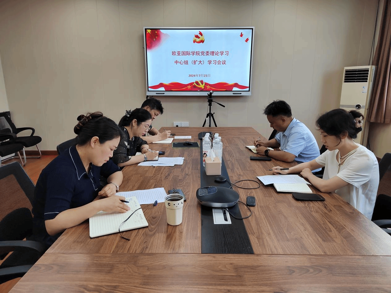 7月23日上午,西瓜视频 在院二楼205会议室举行党委理论学习中心组学习暨党纪学习教育总结交流会。学院全体党委委员以及学院中层干部代表参加了研讨会。会议由院党委副书记贺颖主持。