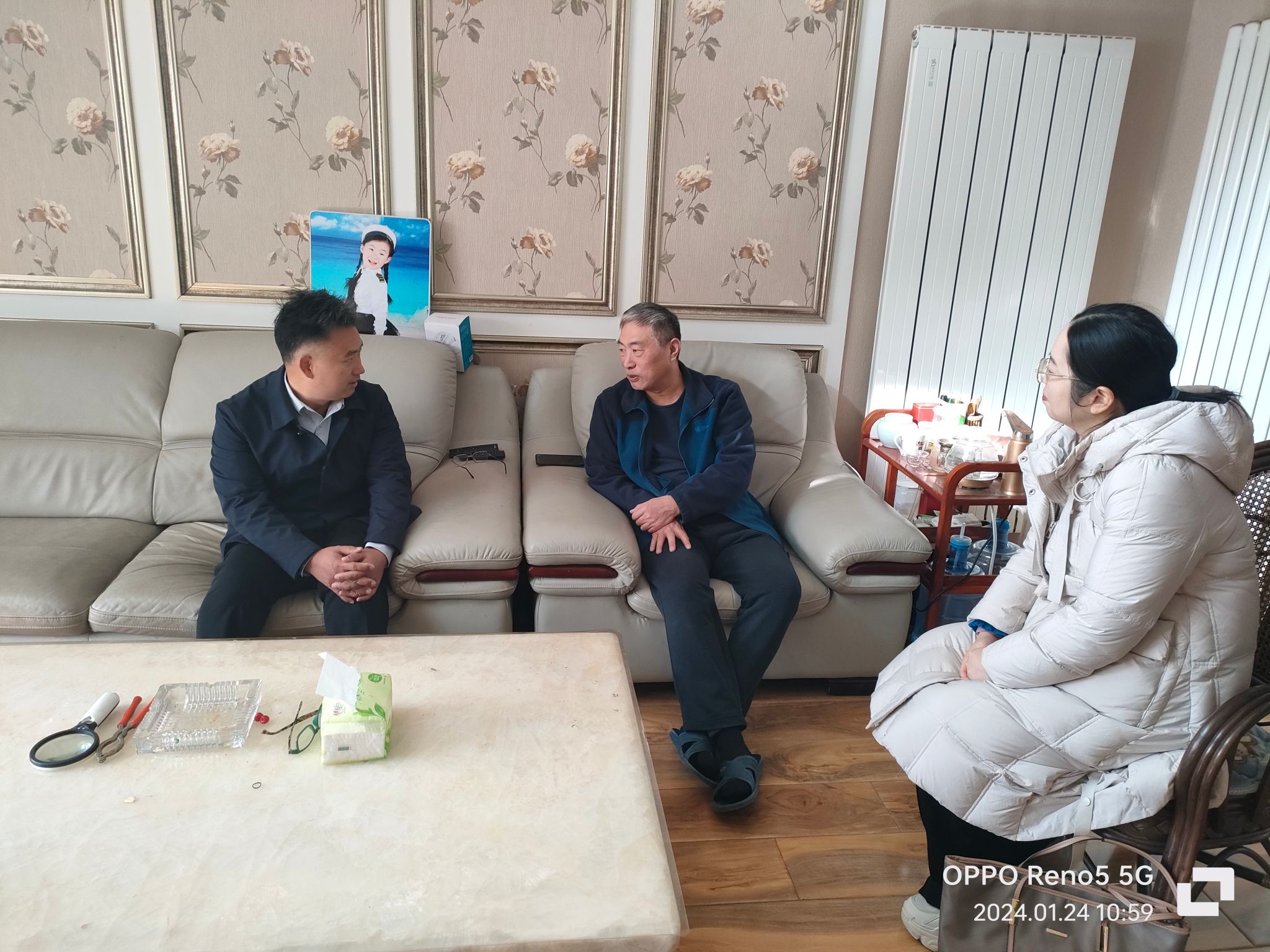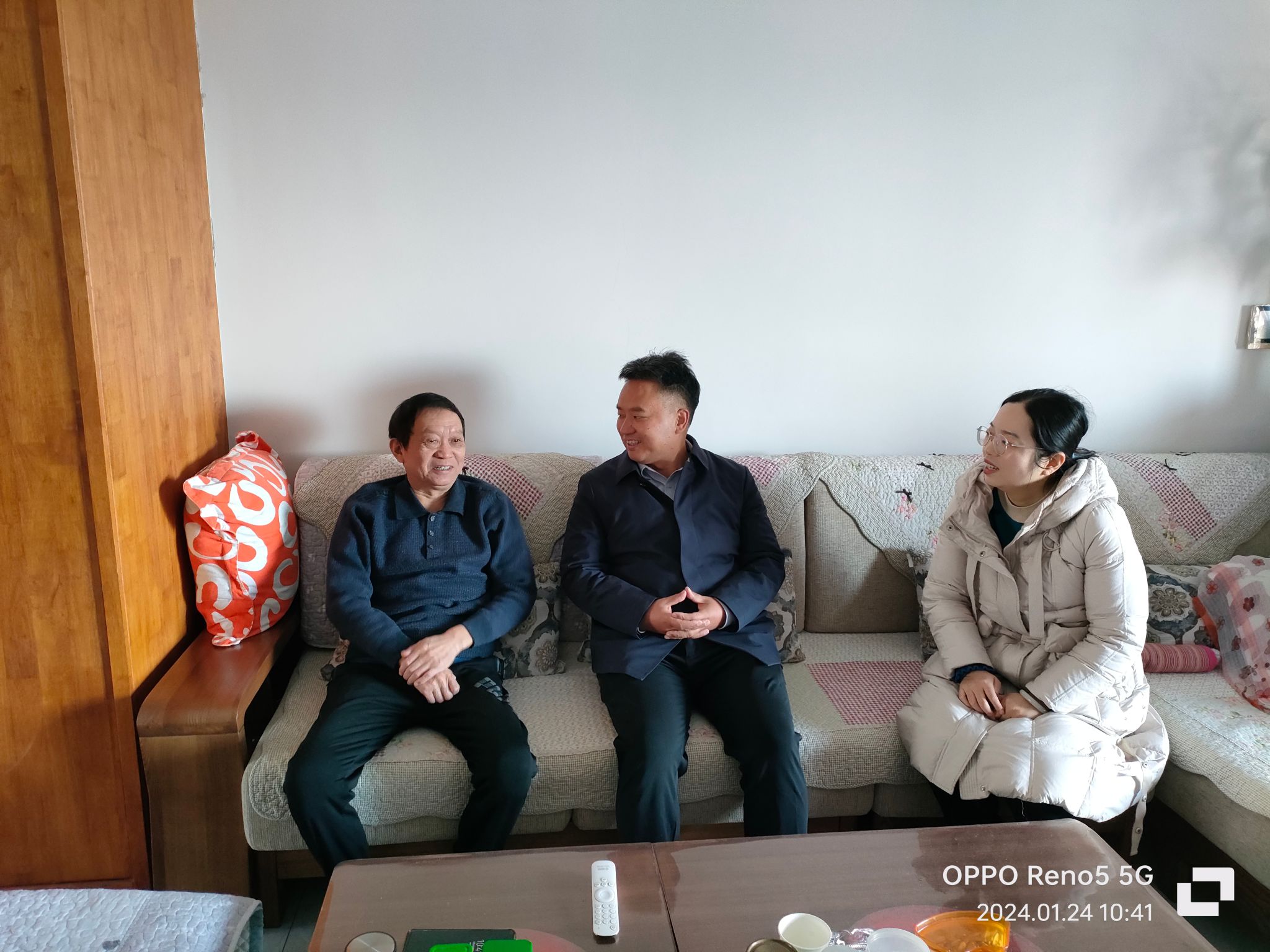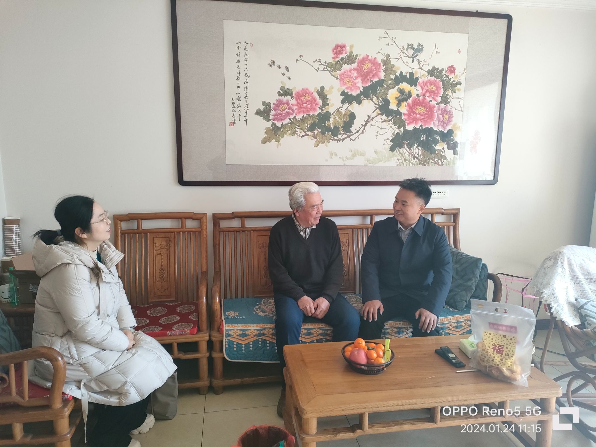 1月24日,西瓜视频 党委书记王振存、党委副书记贺颖、党委办公室主任宿云龙一行走访慰问高忠志、谷跃峰、王敬学等退休老党员老干部,代表学院党委、行政和工会为老同志们送去新春祝福。