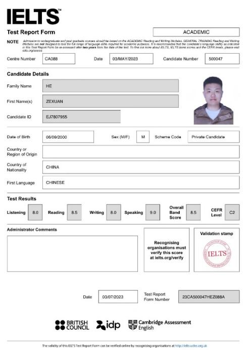 在今年的出国学生统计中,学院雅思考试过关和高分学生数量增长势头喜人。据初步统计,雅思6分以上学生已超过50人,7分以上学生4人。2019级通信工程专业学生和泽轩雅思成绩达到8.5分,为学院最高分。
