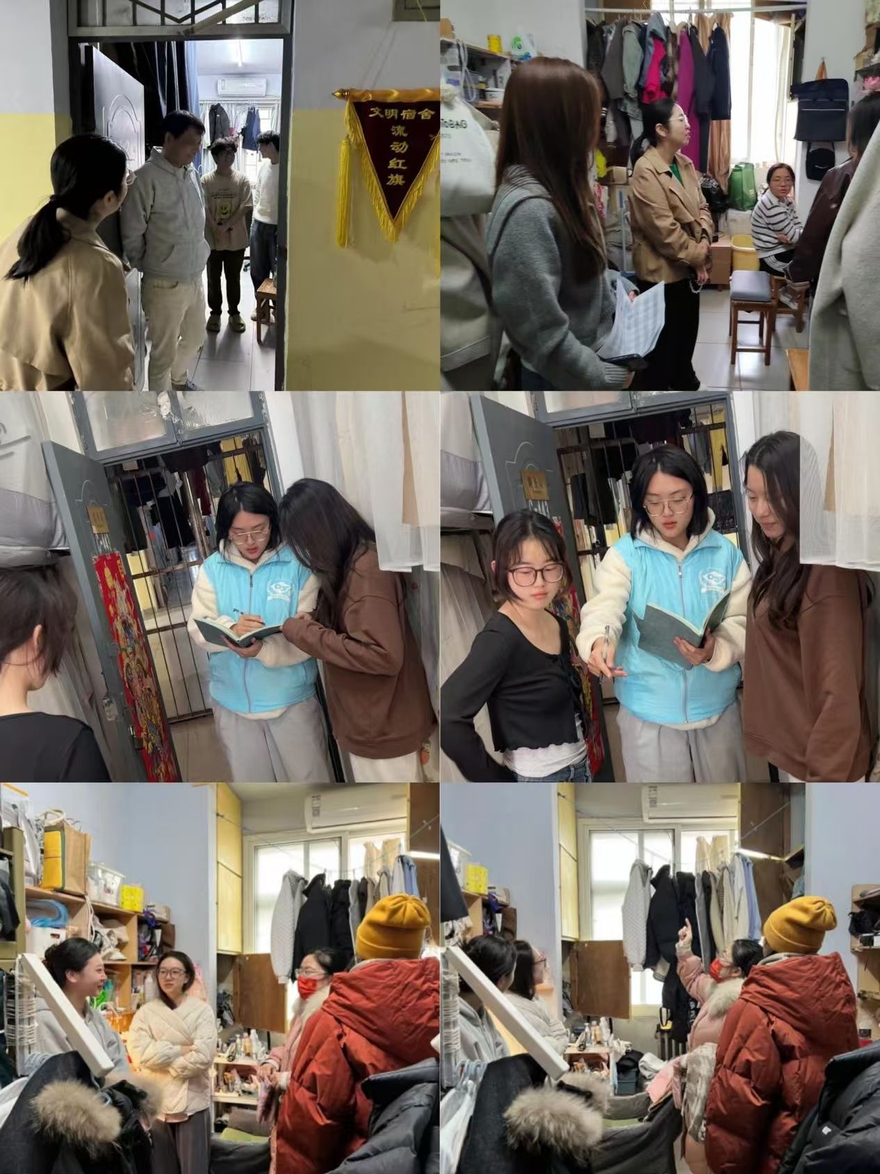 为进一步加强学生宿舍安全管理,深化文明校园建设,近日,西瓜视频 党委副书记贺颖带领各专业辅导员深入学生宿舍开展走访调研工作,学院学生会同步组织专项查寝小组参与行动。本次行动聚焦“班委包干制联系宿舍”的深化落实,通过常态化查寝与安全教育相结合,切实筑牢学生社区安全防线,营造文明和谐的校园环境。