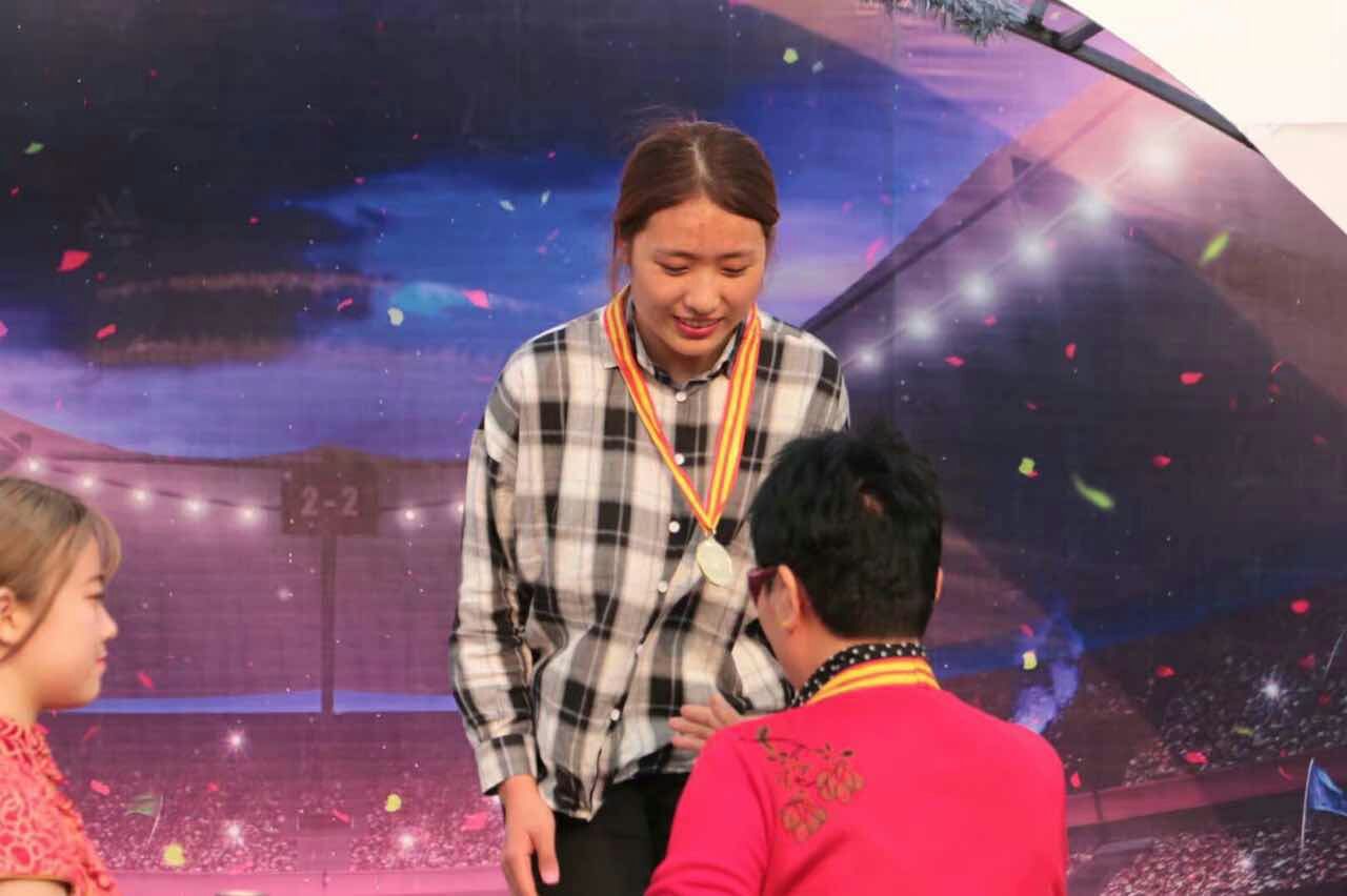 李新育荣获女子组100米比赛第六名;李硕荣获男子组引体向上比赛第六名;
