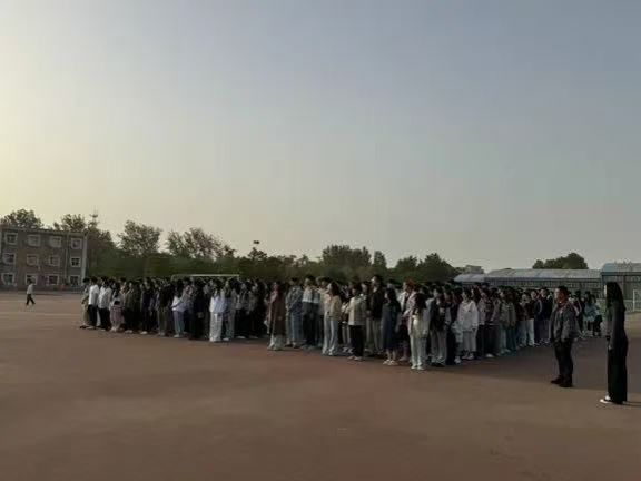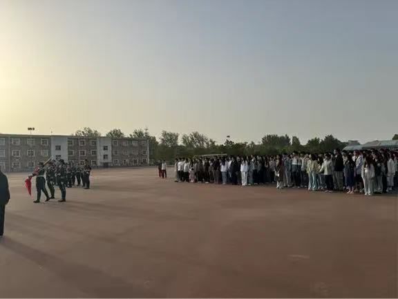 随着第一缕阳光洒落操场,国旗护卫队踏着铿锵有力的步伐护送五星红旗入场。他们身姿挺拔如松,眼神坚定如炬,整齐划一的动作彰显着青春的力量与担当。“升国旗,奏唱国歌!”在激昂的国歌声中,五星红旗冉冉升起,全体师生庄严肃立,高唱国歌,向国旗行注目礼。歌声与朝阳交织,炽热的爱国情怀在每个人心中澎湃激荡。