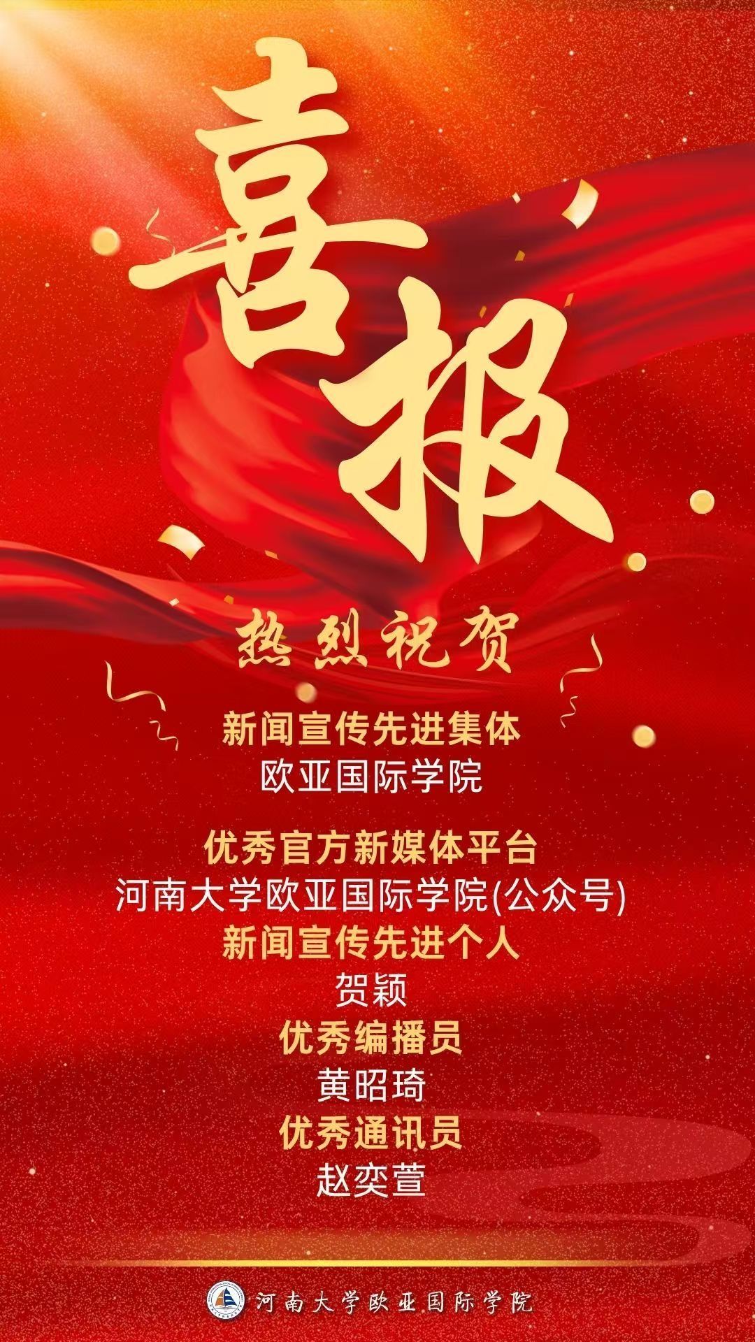 荣获“新闻宣传先进集体”和“优秀官方新媒体平台”两项集体荣誉,同时,院党委副书记贺颖获评“宣传工作先进个人”称号,2022级俄语专业黄昭琦被评为“优秀编播员”,2022级播音与主持艺术专业赵奕萱被评为“优秀通讯员”。