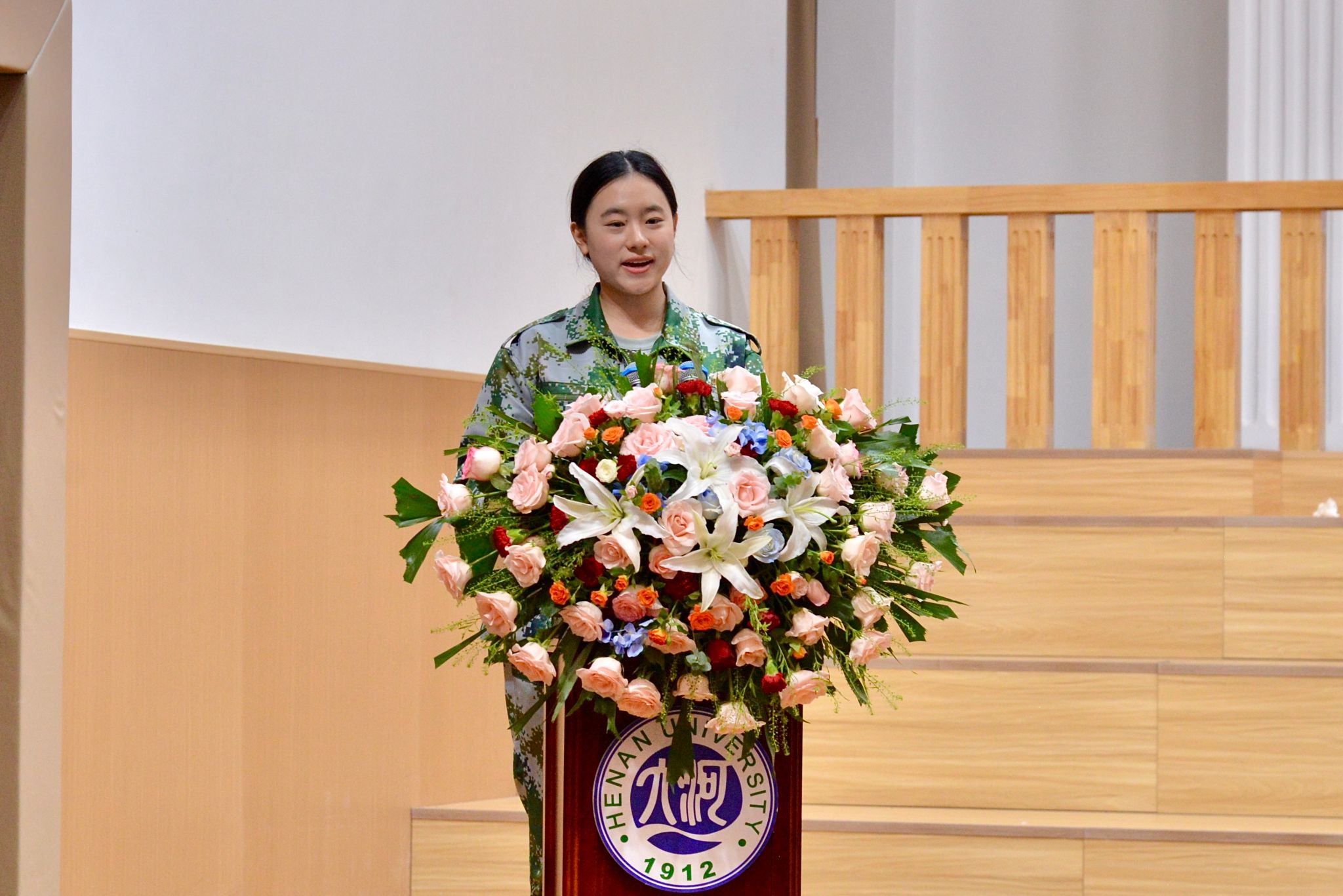 2025级播音与主持艺术专业的陈卓作为新生代表发言。她号召同学们以专业为锚、以文化为帆,既要练就硬核本领,又要肩负家国使命,让欧亚因青春更具活力,让河大因奋斗更加闪耀 。