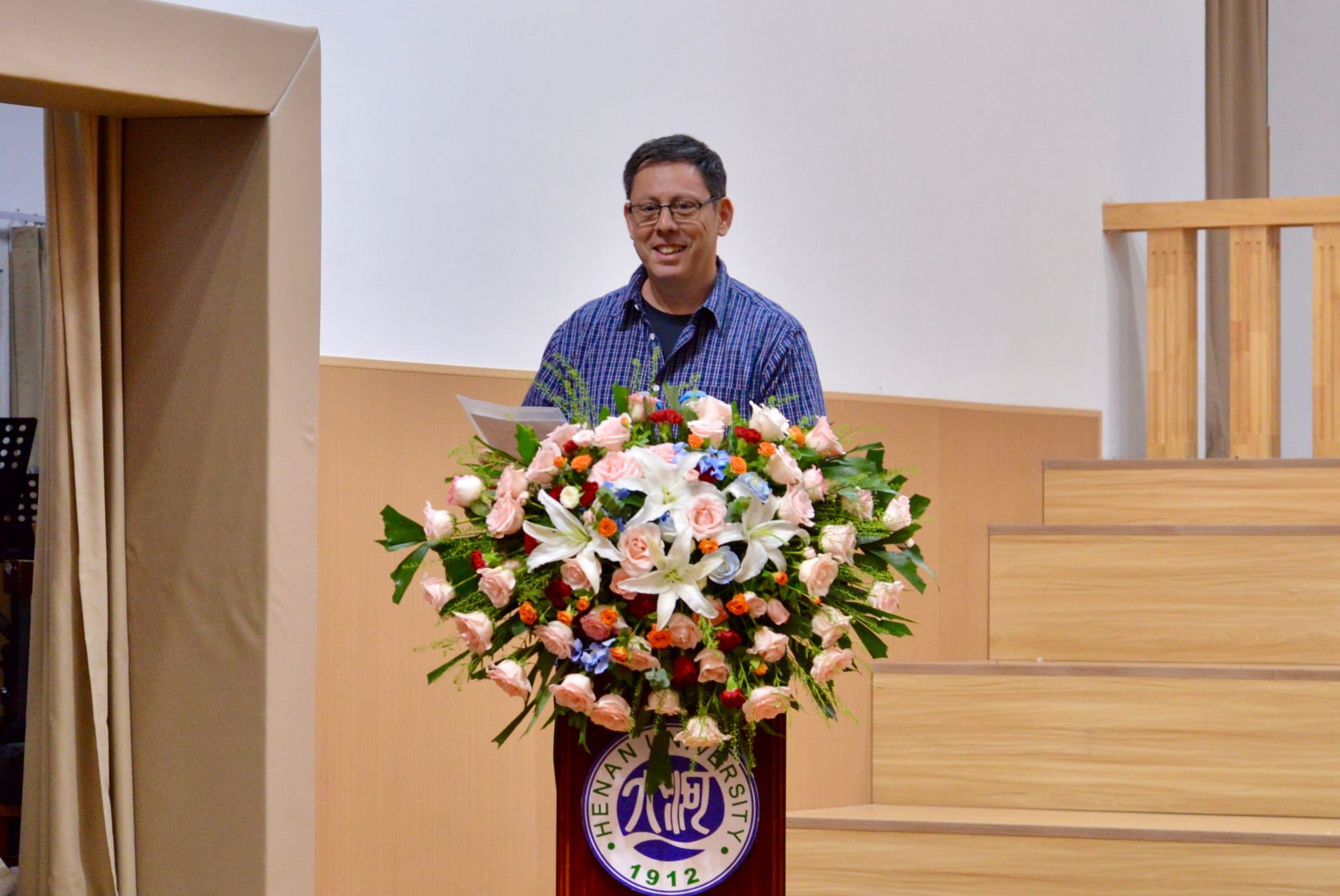 外籍教师代表Alex Bell鼓励同学们以自信、喜悦和希望拥抱大学生活,在探索中找到属于自己的价值与方向,并将这段旅程视为“新的家庭、新的开始” 。