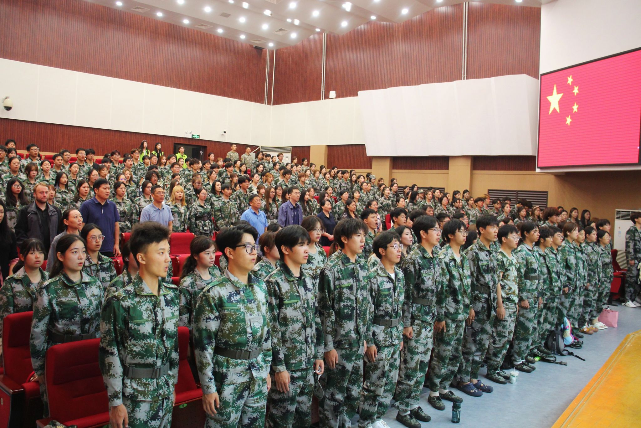 在庄严的国歌声中,开学典礼拉开序幕。全体师生齐声高唱《中华人民共和国国歌》,用最昂扬的歌声迎接青春的新起点。