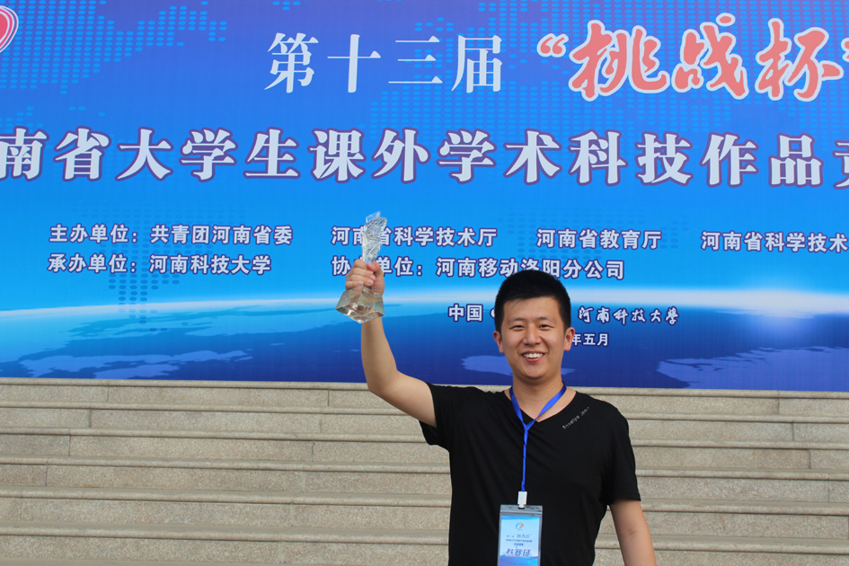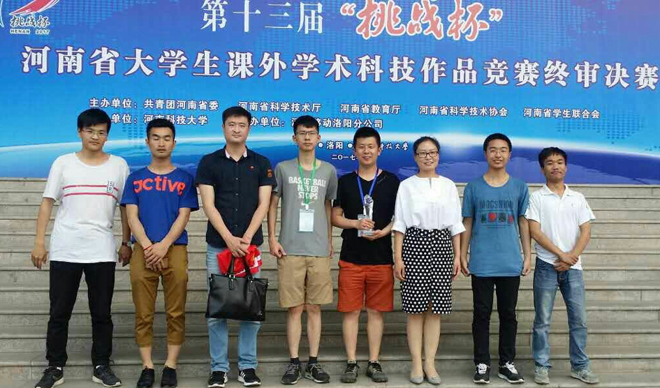 2017年5月18-21日,2017年第13届“挑战杯”河南省大学生课外学术科技作品竞赛暨颁奖仪式在河南科技学院举行,我院2014级通信工程专业学生赵春阳、单淋琳、刘挺北、郭柏森的项目《便携式房屋隔噪性能光测量系统》在大赛中表现出色,荣获省赛一等奖。