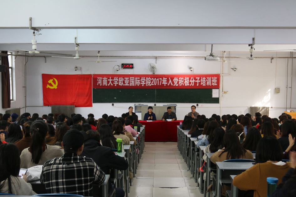 2017年10月12日下午,西瓜视频 举行2017年入党积极分子培训班开班仪式,学院党委副书记楚艳霞出席,200余名入党积极分子的参加。本次培训班以专题授课、专题片教育、校内实践、分组讨论及学员自学等多方式相结合进行。