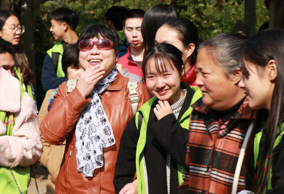 2017年11月4日,西瓜视频 青协组织50名同学,赴开封龙亭公园,与开封市青协合作开展“我是你的眼”助盲赏菊志愿服务活动。