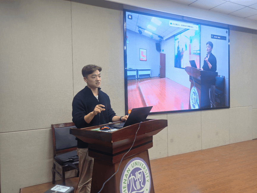 贺颖代表学院对返校校友表示诚挚欢迎,并逐一介绍两位校友的成长经历。她寄语在场学子,要以优秀校友为标杆,锤炼过硬本领,厚植创新创业精神,在青春的赛道上奋力奔跑,跑出当代青年的最好成绩。