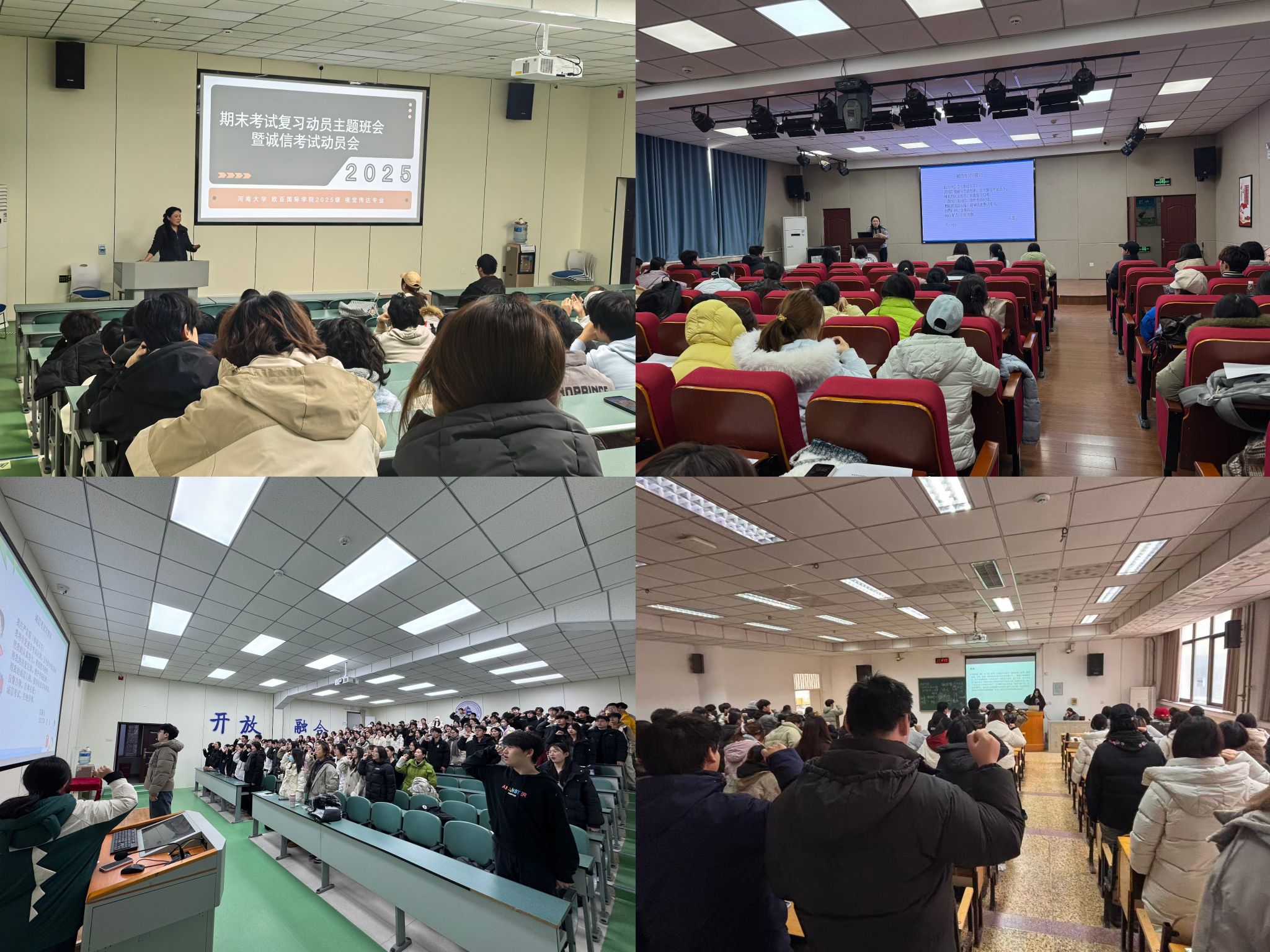 在备考指导方面,学院教务办和任课教师结合课程特点,对考试范围、高频考点及复习方法进行针对性说明,帮助同学们理清复习思路、避免盲目用力,进一步增强备考的系统性与针对性。动员大会的召开,为学生顺利迎接期末考试奠定了坚实基础,也在全院范围内营造了理性备考、诚信应考的良好氛围。