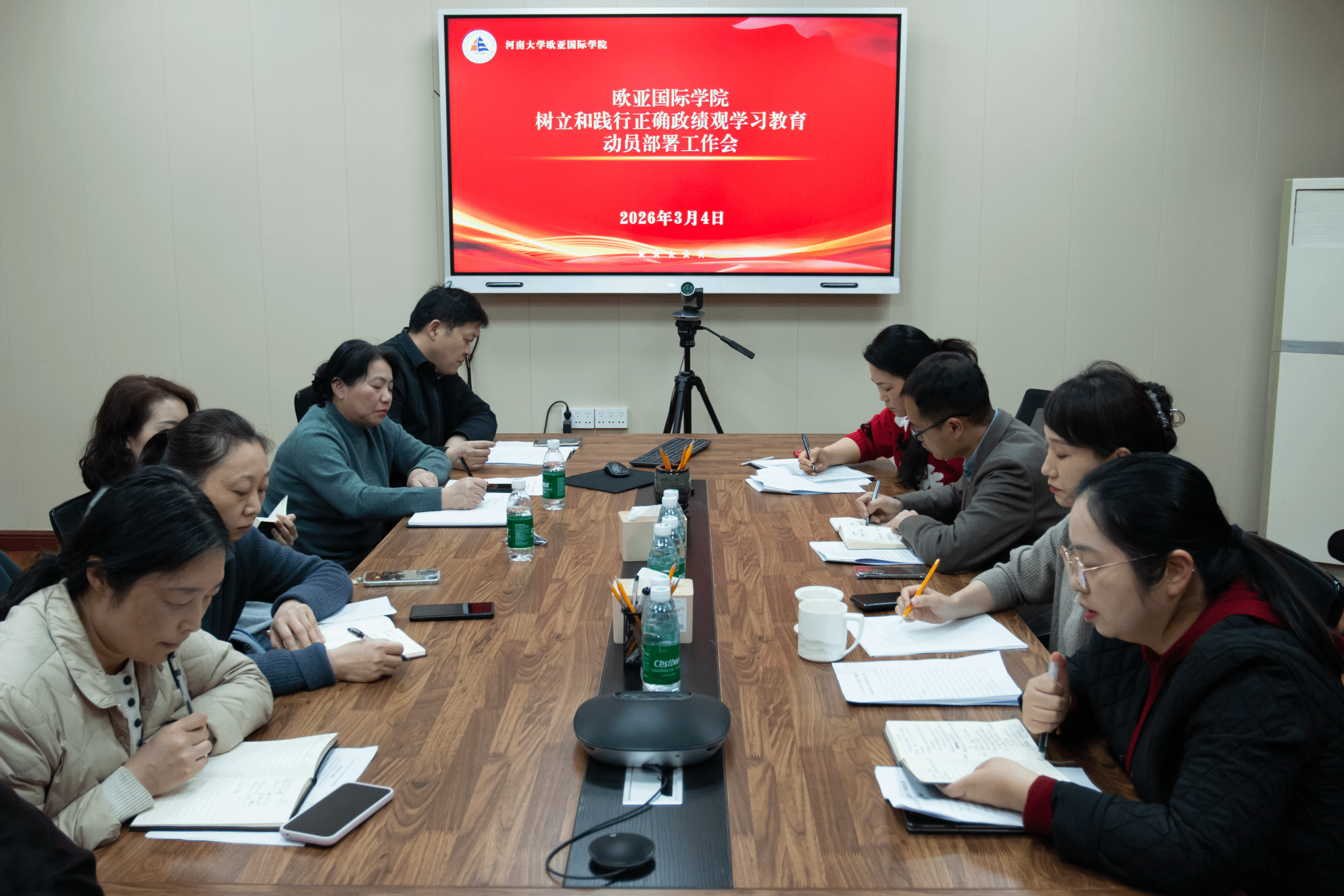 3月4日下午,西瓜视频 在院205会议室召开党委会(扩大)会议,开展树立和践行正确政绩观学习教育的动员部署工作。学院领导班子成员、党委委员及中层干部参加会议,会议由学院党委书记刘佳明主持。