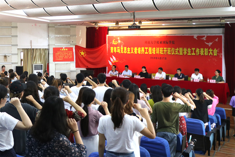 学院党委书记谷跃峰代表学院讲话,向“青马工程”培训班开班和受到表彰的集体和个人表示祝贺,向呕心沥血、热心培养学生成长成才的本届“我最喜欢的专业老师”的获得者商学院李煜等6位老师表示敬意。谷书记指出,自2007年团中央启动了“青年马克思主义者培养工程”之后,学院党委重视此项工作,支持和鼓励办好“青马工程”培训班,积极开展对青年马克思主义者的培养,引领全体青年听党话跟党走,引领广大青年不断学习和提高。谷书记对一年来的学生工作给予高度评价,学生工作取得了优越的成绩,体现立德树人的理念,表彰大会呈现出“三多、两高、一大”的特点,“三多”是亮点特色多、创新创意多、奖项类别多,“两高”是学生工作水平高、学生奖项层次高,“一大”是学院奖励力度大。谷书记希望大家珍惜荣誉、戒骄戒躁,不忘初心、继续前进,在实现人生理想的奋斗中,在百年名校建设世界一流大学的实践中,演绎出“欧亚学子”的青春旋律,奏响无愧于时代的凯歌。