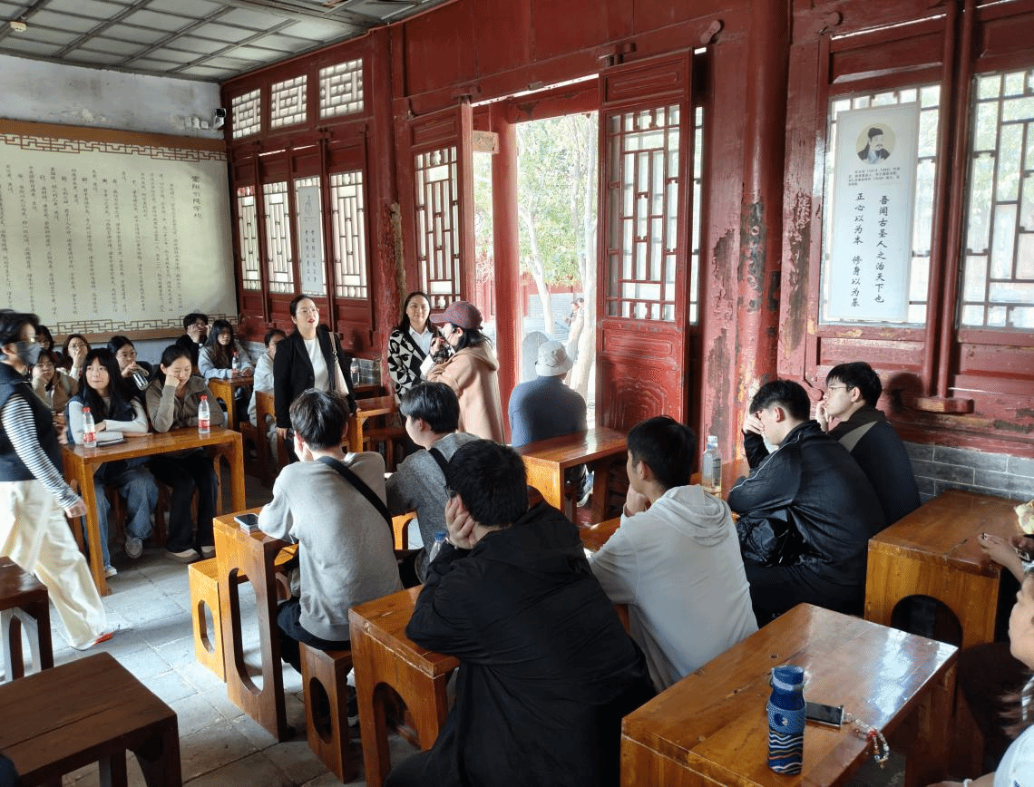 结束观星台的参观学习后,师生一行移步至有着“四大书院”之一美誉的嵩阳书院。在古色古香的书院院落,讲解员围绕书院的千年办学历史、儒学文化传承、历代名人讲学轶事等内容展开详细讲述,深入解读碑刻文字蕴含的文化内涵、先圣殿所承载的儒家思想精髓。漫步书院回廊,同学们在一砖一瓦、一碑一刻中,触摸历史文脉,传承尊师重道、勤学笃行的优良传统,进一步增强了文化自信与民族自豪感。