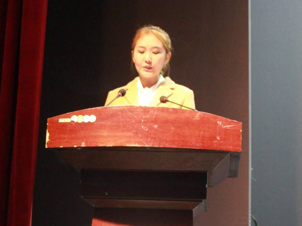 在校生代表、2016级环境与艺术专业王思奇同学将自己的宝贵经验同新生共勉,作为在校生代表,王思奇鼓励大家努力拼搏,奋力实现自我的学业目标。
