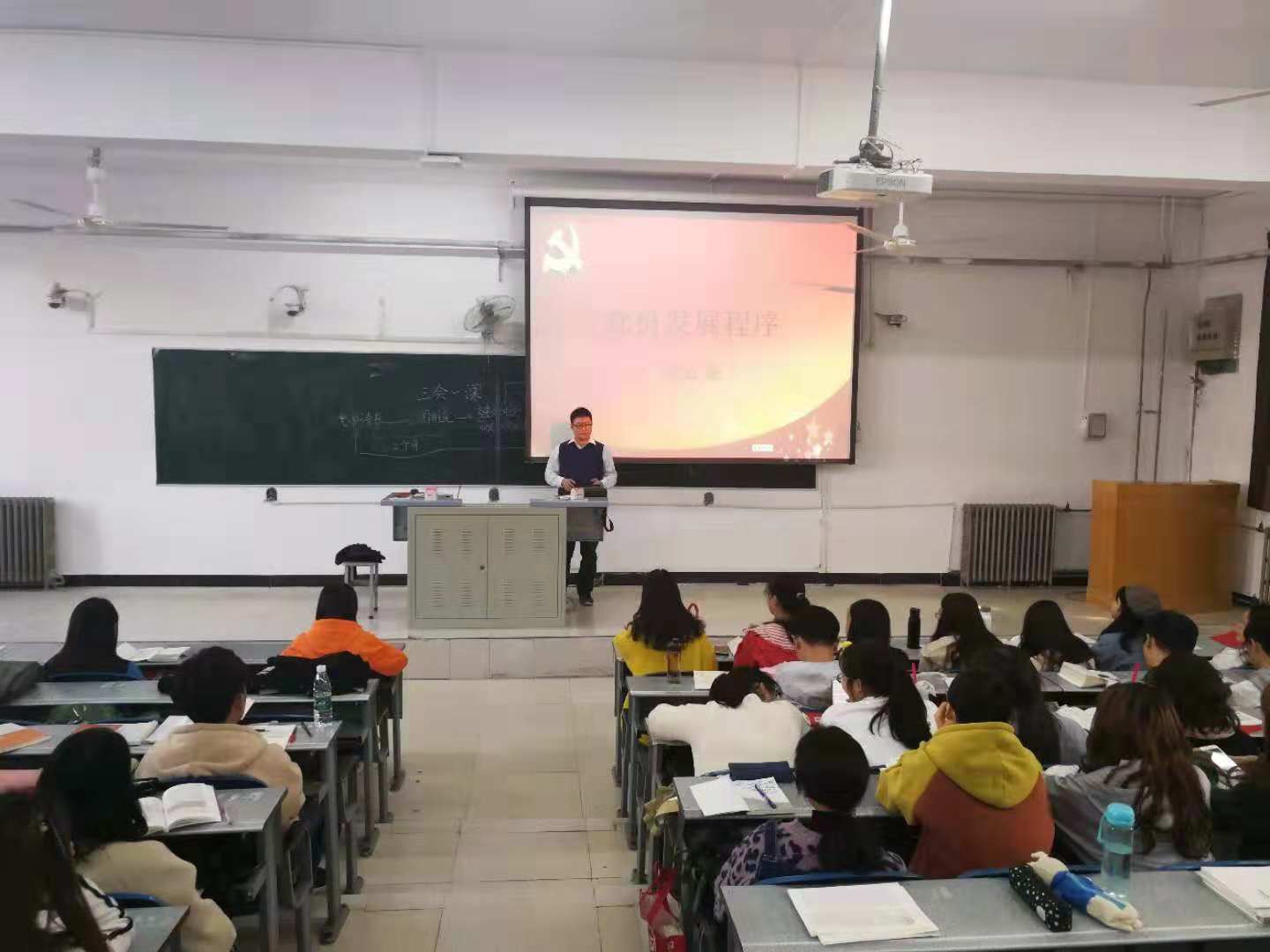 学院党政办副主任宿云龙向学员们详细讲解了党员发展工作程序和社会主义宗教观,使同学们清楚了成为一名中共党员的条件、步骤、在意识形态领域应坚持的立场以及如何承担起反宗教渗透的职责。