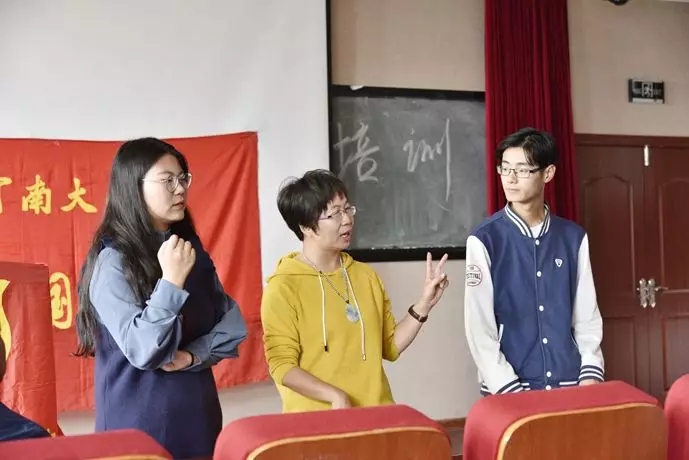 11月4日上午八点,由西瓜视频 青年志愿者协会组织的“带盲人游河大,给盲人讲河大”助盲培训活动在欧亚报告厅召开。