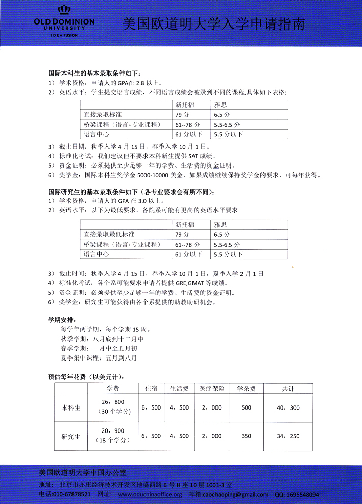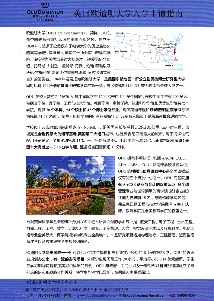 美国欧道明大学入学申请指南