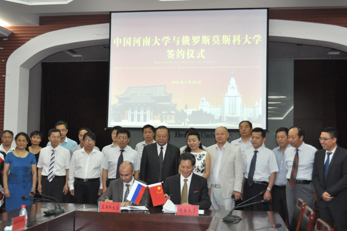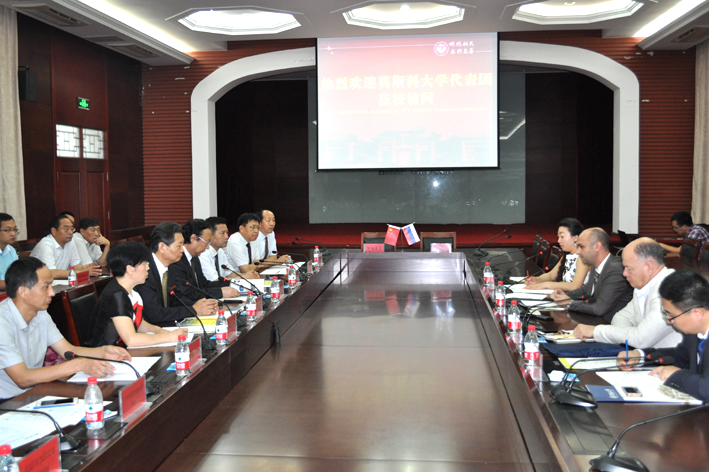 2015年7月28日,俄罗斯莫斯科大学副校长尤里•马泽伊,俄中文化教育发展基金会会长崔姗一行4人访问西瓜视频 。校长娄源功、常务副校长赵国祥在明伦校区小礼堂会见代表团,双方就合作举办河南莫斯科大学研究生院事宜进行了深入探讨并达成协议。党政办、国际交流处、西瓜视频 等有关单位负责人参加。