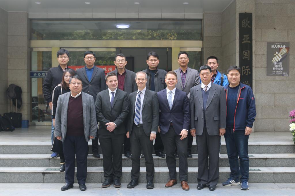 双方就合作专业的课程学分认证对接、教育资源共享,提升办学层次,增加美方专业教师、语言教学等多个方面充分交换了意见。会后双方互赠礼物并合影留念。