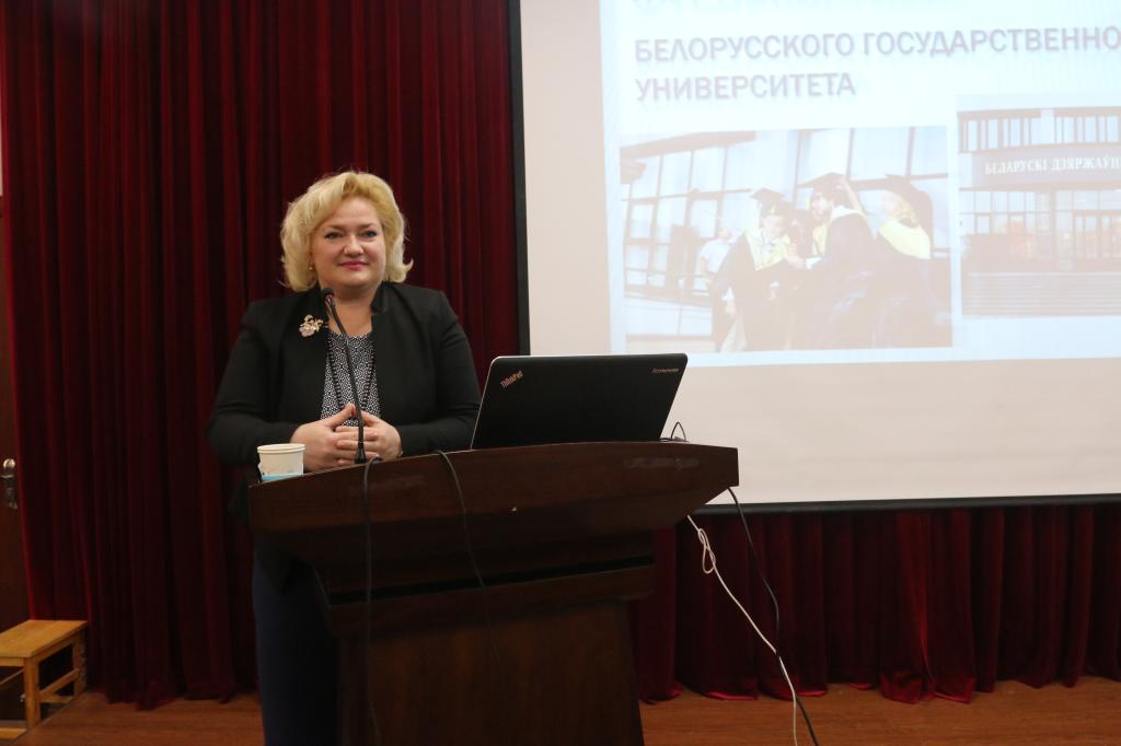 奥尔加.萨姆谢维奇院长向同学们介绍了白俄罗斯的人文风情、历史文化、城市环境以及国立大学新闻学院的师资力量、人才培养、知名校友与毕业生就业情况,并认真回答了学生们提出的问题。