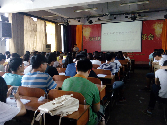 2015年6月4日,2013级金融学和通信工程全体同学于二楼报告厅分两批开展“大学生安全教育”主题班会,辅导员宿云龙主持并主讲。