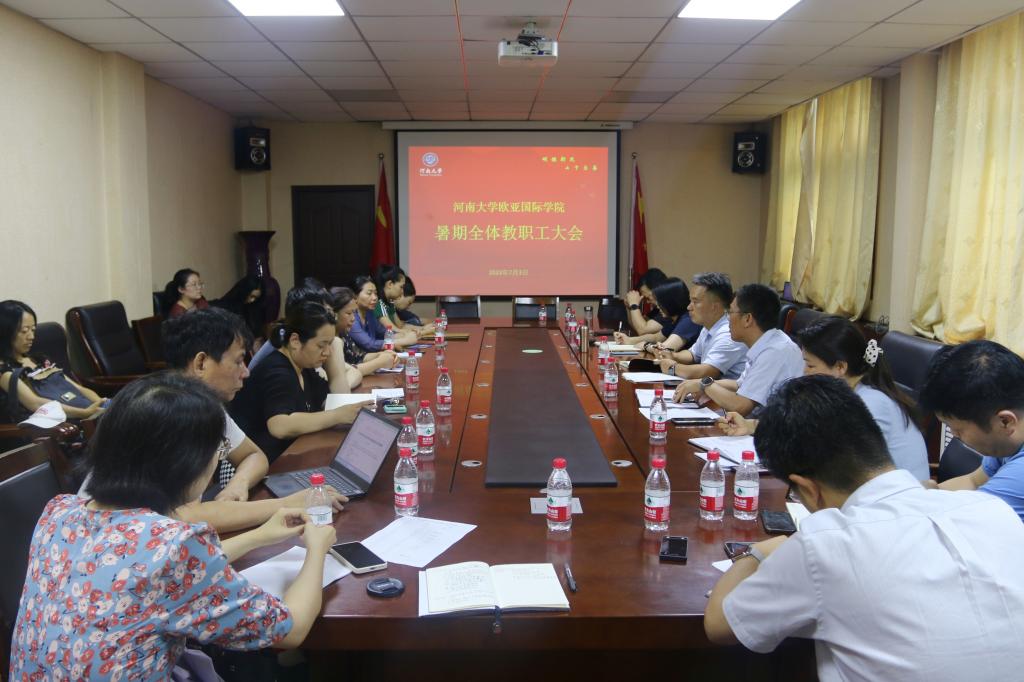 杨春伟对本学期外教管理、学生出国、审计工作、教学设施建设、工会工作等方面进行了总结,对暑期中外合作办学项目延期申报、合作办学评估、研究生项目申报、专业教室建设、办公环境升级、安全工作、业务能力提升以及学院四届五次工会大会筹备等方面的工作做了安排。
