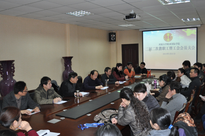 2015年1月21日下午,西瓜视频 在三楼会议室召开二届二次教职工暨工会会员大会。学院领导宋战利、谷跃峰、楚艳霞、王敬学、季超出席,全体教职工和工会会员与会,学院副院长、工会主席王敬学主持了大会。