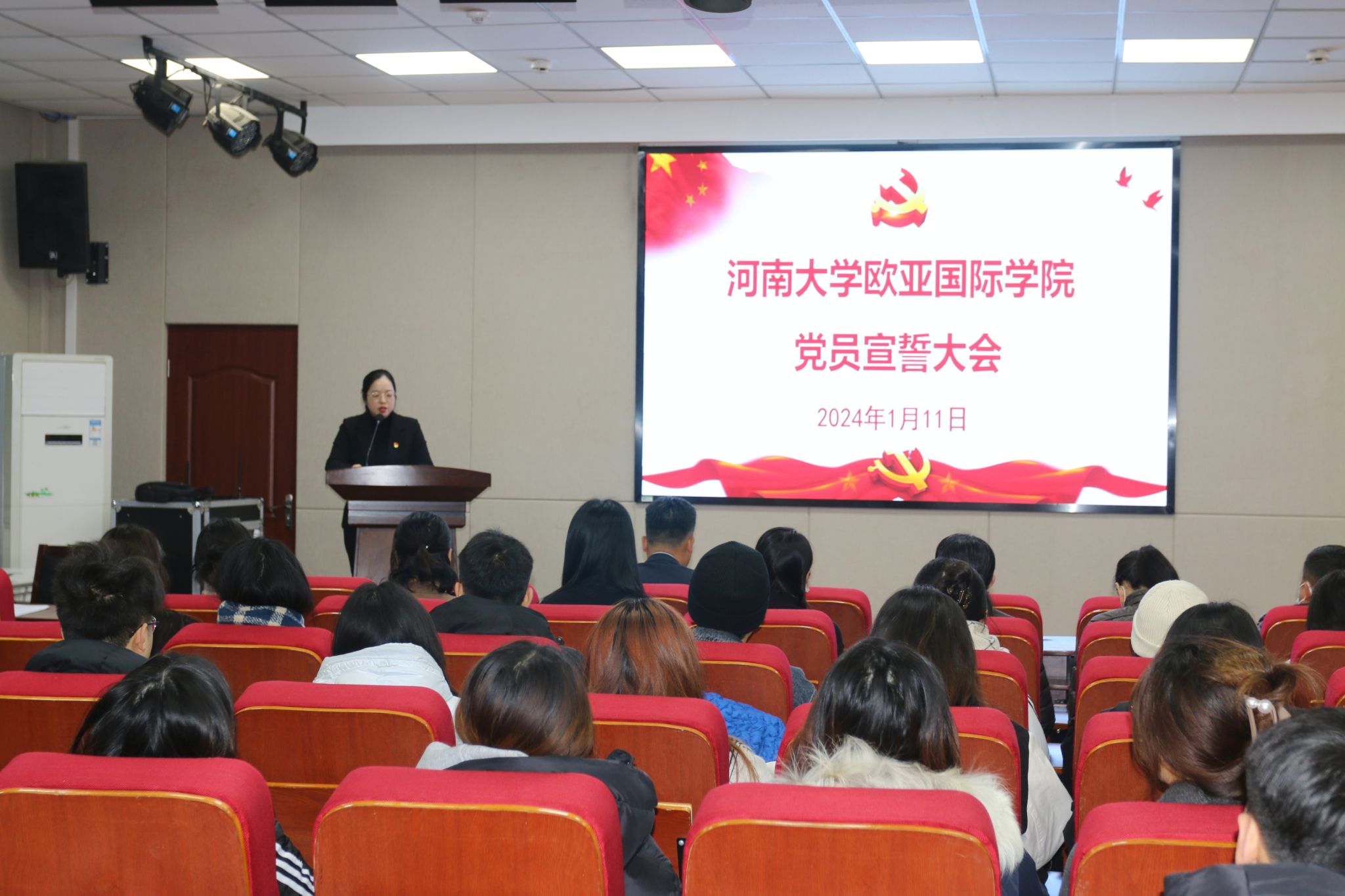 在学院二楼报告厅举行党员宣誓大会。学院全体党员参加了会议。大会由学院党委副书记贺颖主持。