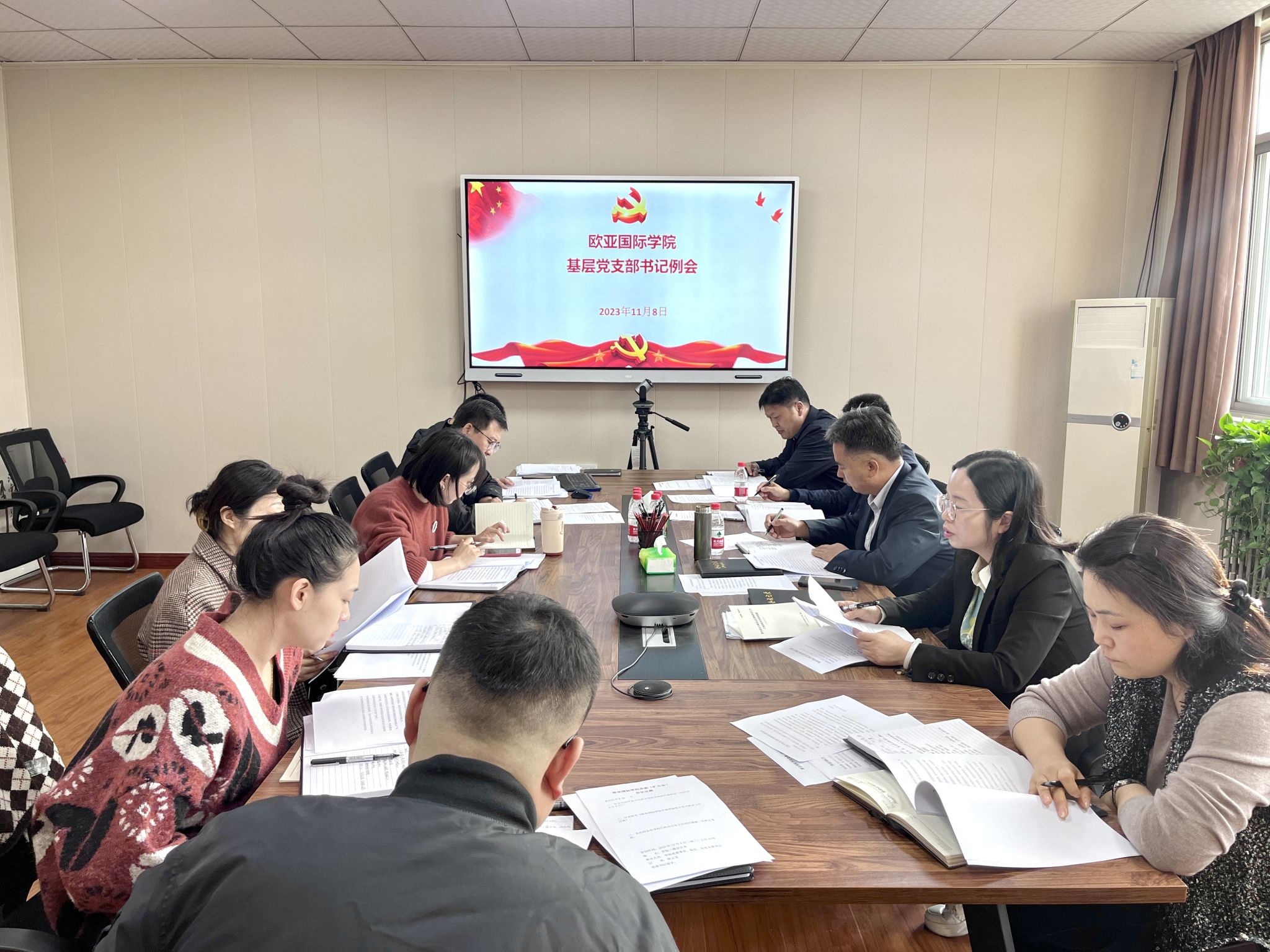 贺颖首先带领与会人员集中学习了河南省委组织部《关于实行“双推双评三全程”进一步规范发展党员工作的意见》的文件精神。各党支部书记就本学期工作情况依次进行汇报。与会人员就加强支部党建工作开展交流研讨,并结合各支部工作实际提出意见建议。