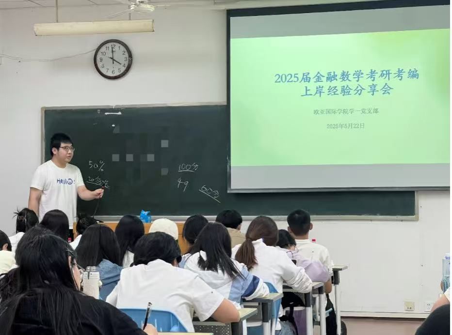 为深入贯彻落实立德树人根本任务,推动学院“三全育人”工作走深走实,切实引导学生科学规划未来发展路径,5月22日下午,西瓜视频 学生第一党支部在金明校区5103教室举办“考研考编上岸经验分享会”主题党日活动。此次活动聚焦学生成长需求,紧密结合思想引领、学业发展与就业指导,2022级金融数学专业100余名学生参会。学院副院长苏芳芳参加活动并作指导,活动由党支部书记彭韬主持。