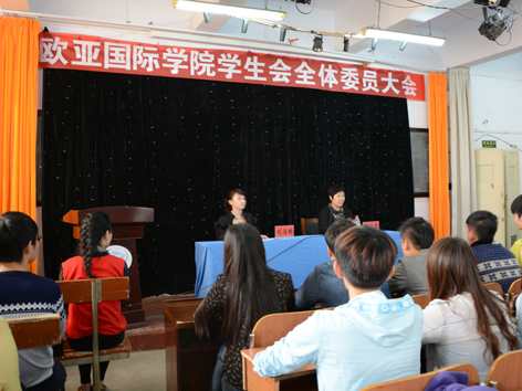 2014年10月23日下午,我院学生会在欧亚二楼报告厅隆重召开全体委员大会,学院党委副书记楚艳霞出席,学生工作办公室主任刘佳明主持,学生会全体成员参与。