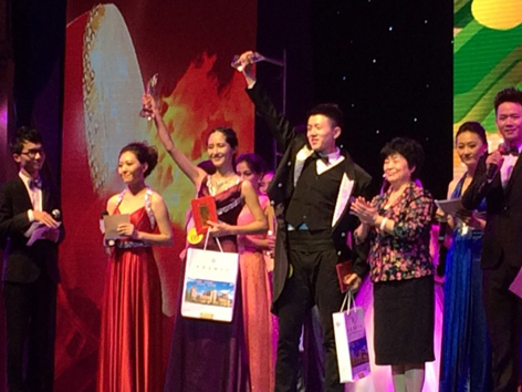 2013级视觉传达专业学生曹瀚文荣获冠军。校党委副书记王凌亲自为冠军获得者曹瀚文颁奖并合影留念。