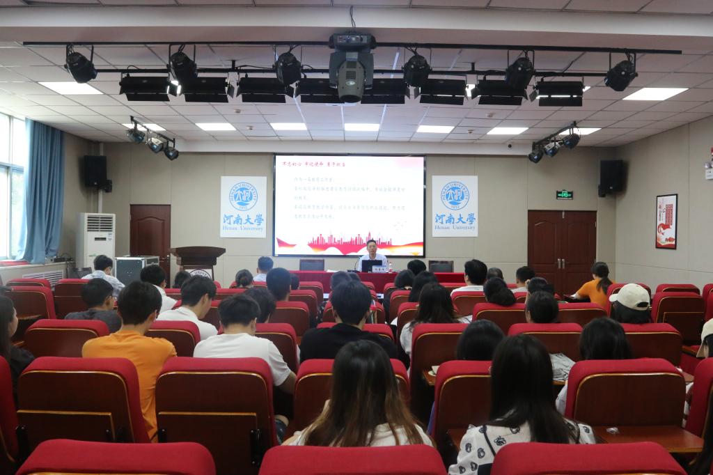 随后,杨春伟做了题为“不忘初心 牢记使命 勇于担当——全面推进国际化办学提质增效,为双一流大学建设做贡献”的专题党课。他结合学校发展历史与学校和学院国际办学历程,详细讲述了学校和学院国际办学的成果、面临的困难和挑战以及未来发展方向。他希望同志们能够不忘初心,牢记使命,传承和发扬河大精神,凝心聚力谋发展,推动学校和学院国际化事业上水平上台阶。