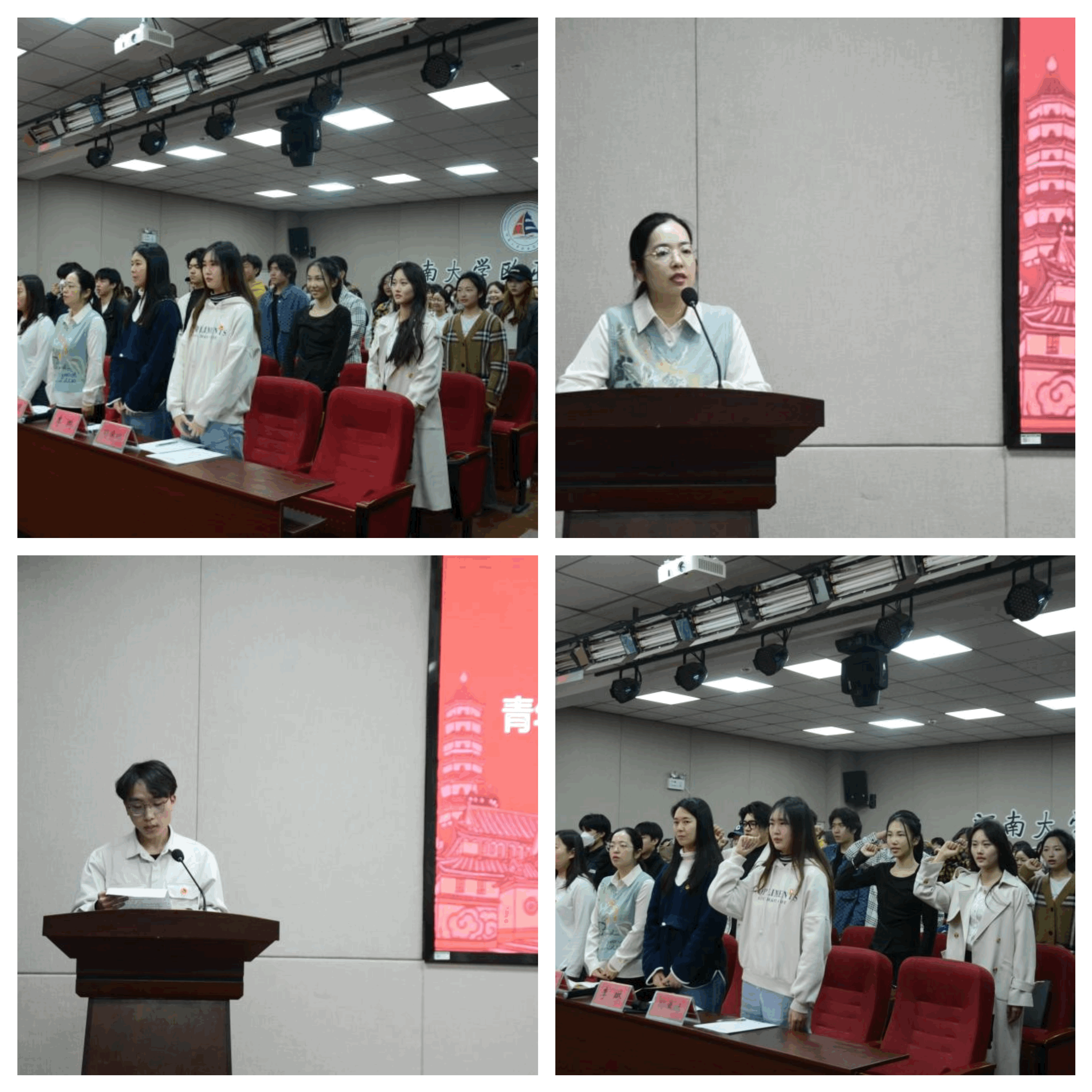 仪式最后,主持人代书凡带领同学们一同重温了入团誓词,誓词再次点燃了同学们艰苦奋斗、昂扬向上的激情。开班仪式在一声声洪亮的宣誓声中圆满结束。开班仪式结束后,高畅以《忆百年团史 谱青春华章》为题作报告,从中国共青团的基本概念与中国共青团的光辉历程两方面与学员们进行了分享。
