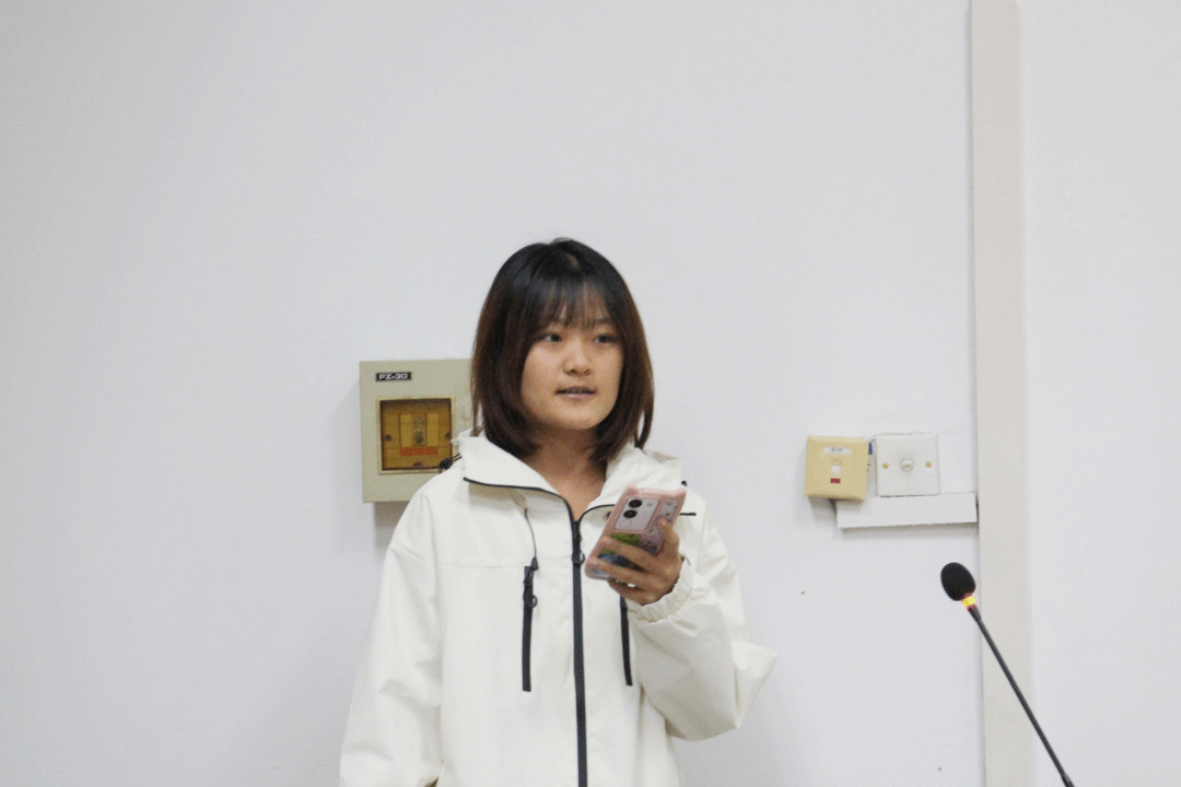2023级学前教育专业李雨霏同学仔细分享了她的备考方案,对听、读、写、译几个方面提出独道见解。她提到了skimming and scanning,希望我们广泛的积累词汇,用扫读,寻读和略读更好地通过阅读测试,鼓励我们在写作方面积极地向范文学习。她提醒我们考试前要有良好的心态,并分享了许多的应试技巧,为我们考试提供了鲜明的导向。
