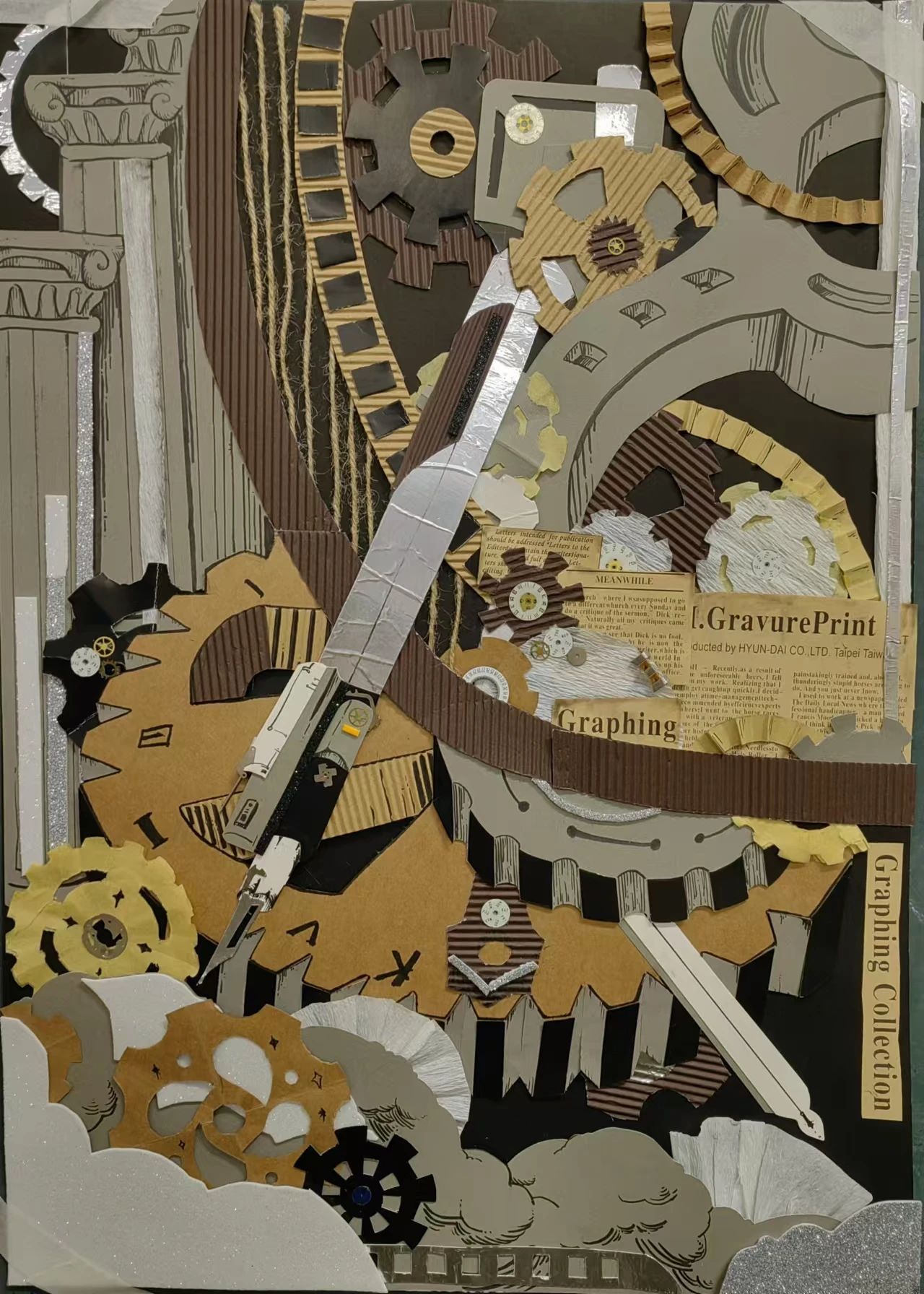同学们运用各式各样的材料,通过剪裁拼贴的方法,学习借鉴大师作品,把所找到的素材结合自己的创新,用抽象的方式表达自己的所思所想与所感所悟。