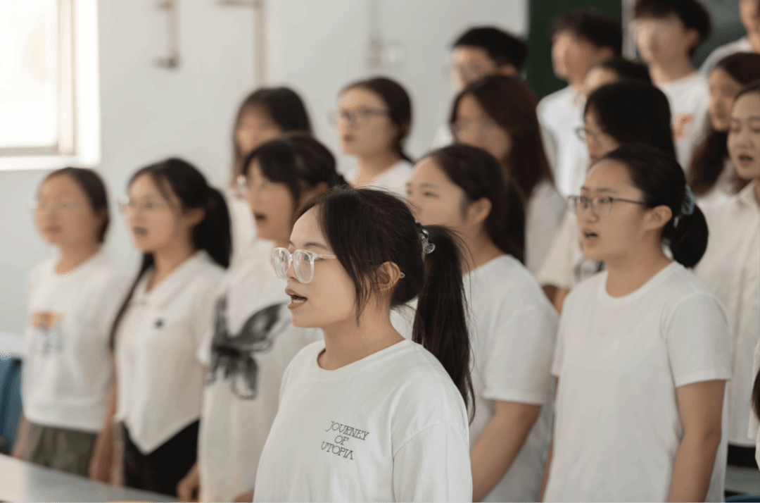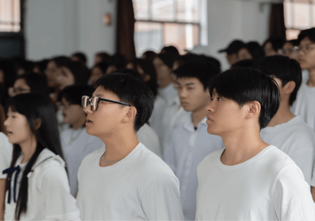 最后现场师生全体起立、齐声高唱校歌。那一刻,不同的声音汇聚成一股强大的力量,穿越时空的界限,将每个人的心紧紧相连。歌声中,既有对学校悠久历史的骄傲,也有对未来的无限向往,更是对“明德新民,止于至善”校训的深刻诠释。