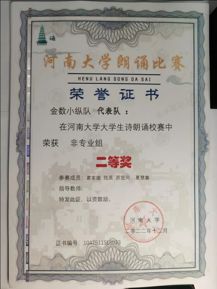 在学习之外,葛家璇同学德智体美劳全面发展,热爱书法、篆刻、摄影,热衷于传播中华优秀传统文化。她的书法作品曾入选两次西瓜视频 书法篆刻比赛入展作品,获得了齐越节朗诵比赛校二等奖。