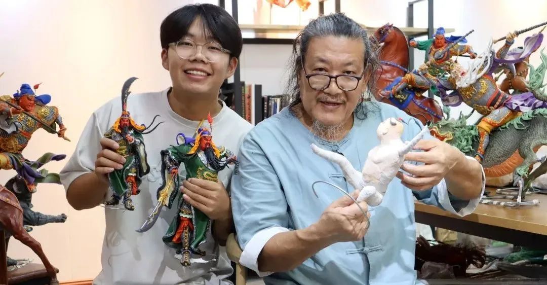 李书闯对非遗面塑等传统技艺的热爱是长在基因里的。他讲述道:“小学的时候,我每天只有一块钱的零花钱,别的小朋友都会拿去买零食买玩具,但我会攒下来,买成各色橡皮泥,搓搓捏捏,做成形态各异的小泥人。当年的创作虽然形态潦草,手法稚嫩,但也赢得了众人的好评。”