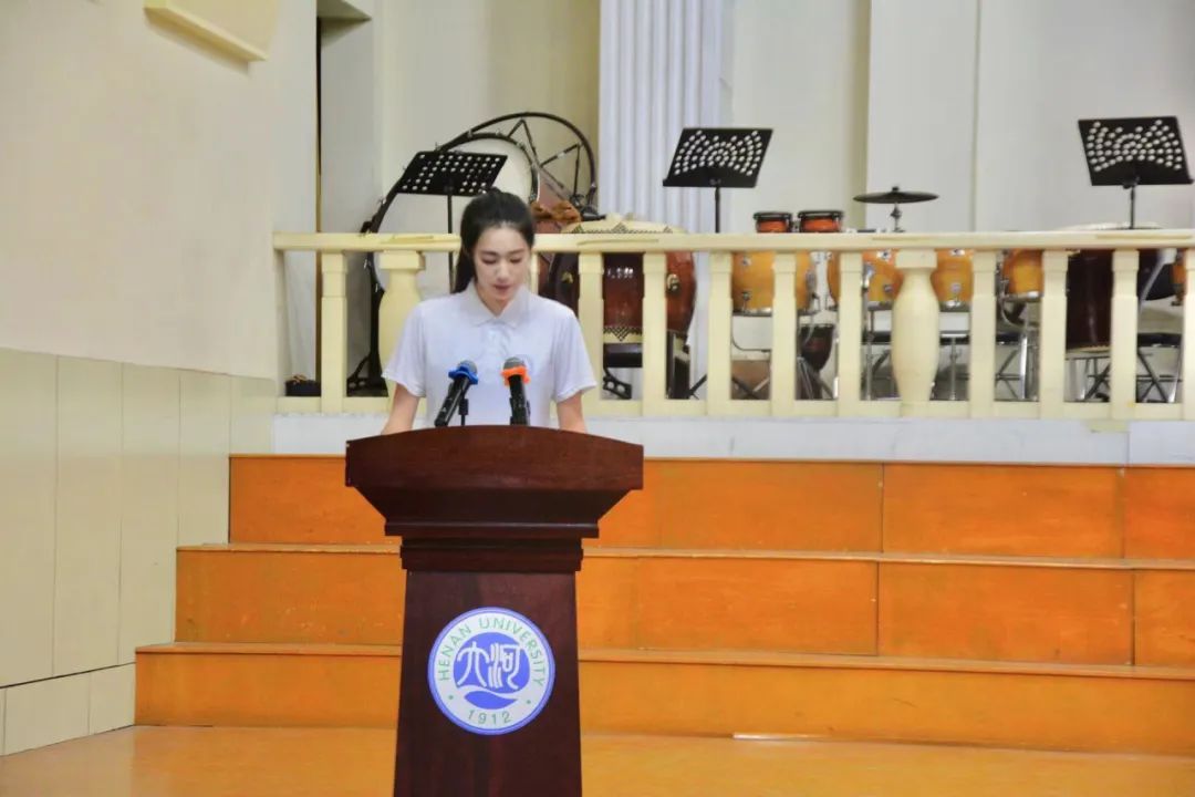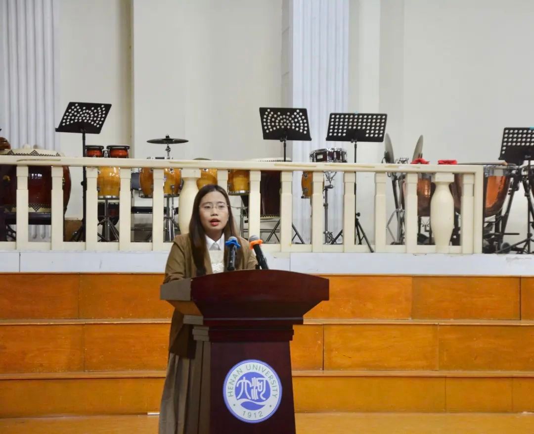2021级视觉传达设计专业高畅作为优秀学生代表向学弟学妹们的到来表示热烈的欢迎。她结合过去两年的大学学习生活经历,分享了如何更好地迎接大学生活,勉励新生积极进取,努力学习,全面发展,不忘初心,砥砺前行。