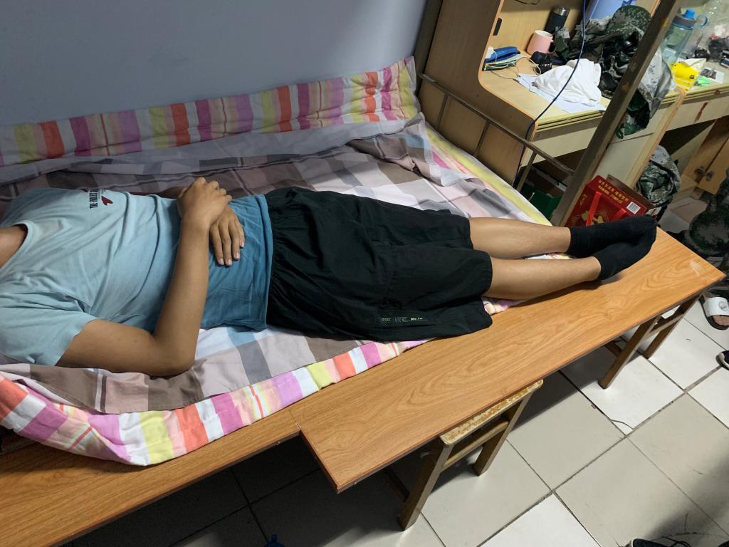 据悉,闫奕霖同学身高193CM,而仁和学生公寓的床板普遍为190CM,因此,闫奕霖同学无法完全平躺在宿舍所配置的床上,只能蜷着腿休息,导致睡眠质量较低,给个人的生活带来了困扰。西瓜视频 2019级土木工程专业辅导员王立老师得知此事后高度重视,立即向学院反映。学院指示王立老师想办法在不影响宿舍原有布局和结构的前提下,想办法解决此事。