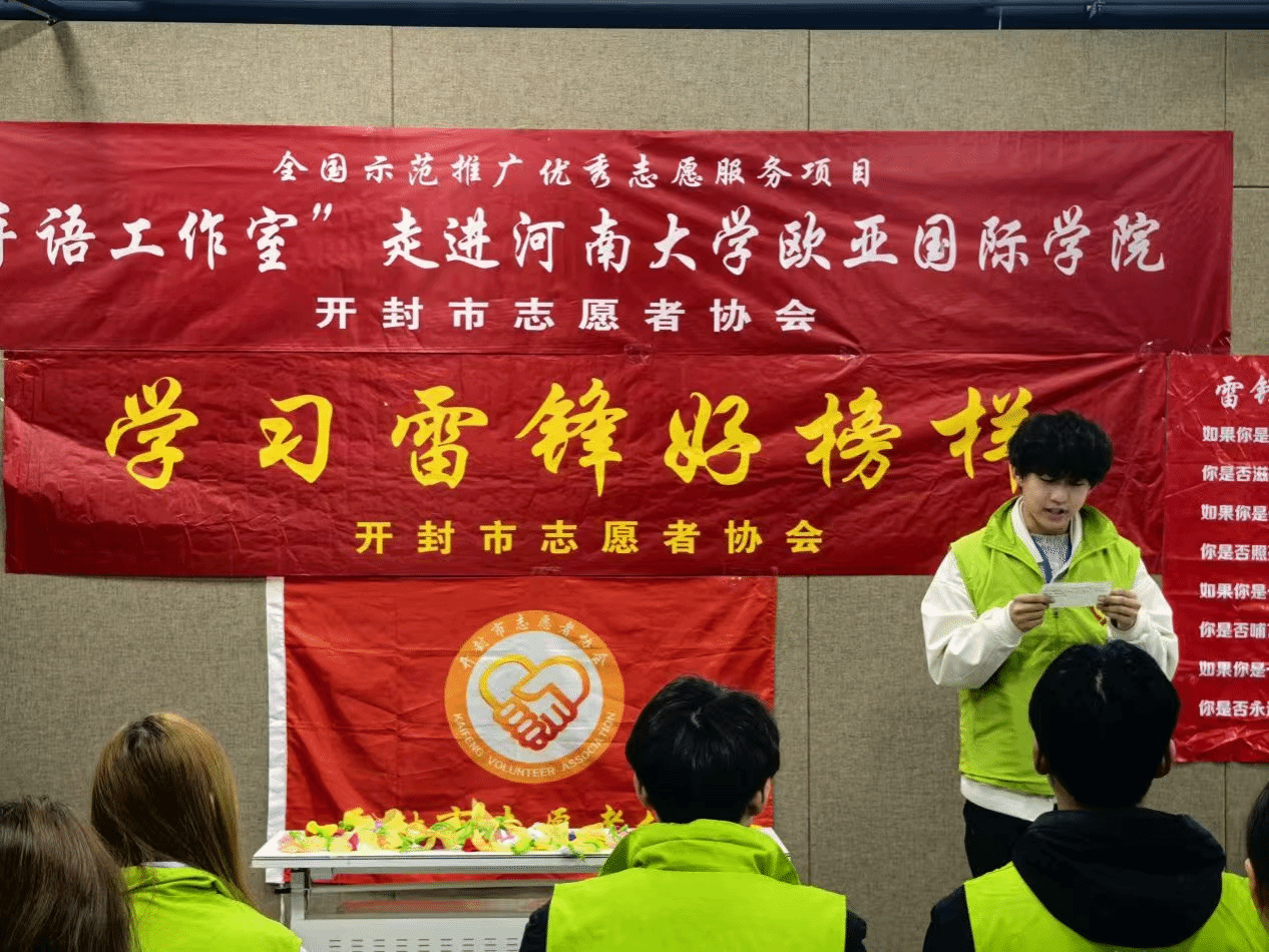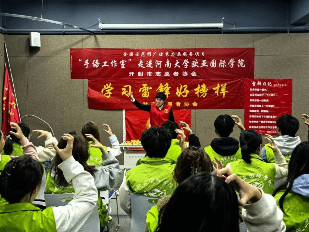 本次活动,欧亚青协有幸邀请到开封市志愿者协会手语工作室的曹玉芬老师和马仁梅老师来为志愿者们做教学指导。活动中,马老师将《雷锋日记》里的内容一字一句地转化为灵动的手语符号。志愿者们的目光也紧紧跟随着马老师的双手,努力领会不同的手指弯曲度、手掌朝向、手臂摆动幅度的独特表意。志愿者们从最初的生疏模仿,到逐渐跟上节奏,日记中的内容像是被赋予了新的生命力,在手语的演绎下,跃动着温暖与力量。