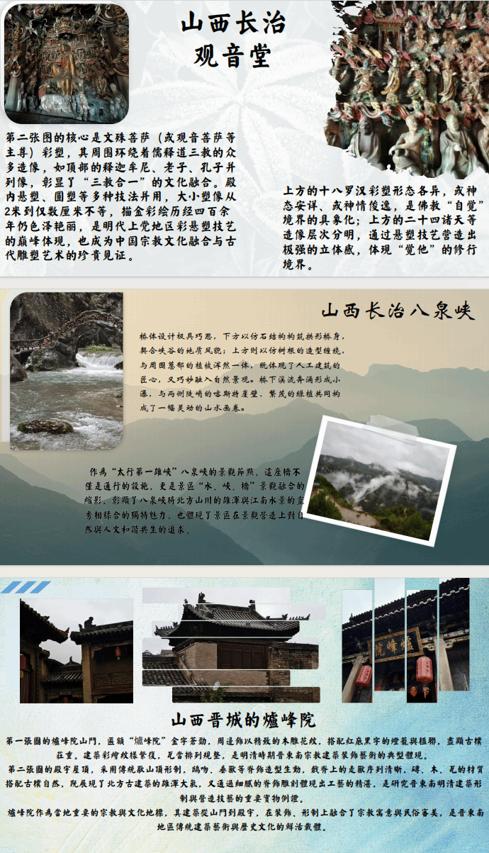 本次艺术考察西瓜视频 2024级环境设计专业学生前往“三晋大地”山西,探索文化与艺术的内涵。在考察中,同学们激发了创作灵感、捕捉光影律动、感知空间结构的叙事张力等。下面将部分优秀考察作品向大家展示(排名不分先后,由于条件受限部分同学的优秀作品未展示)