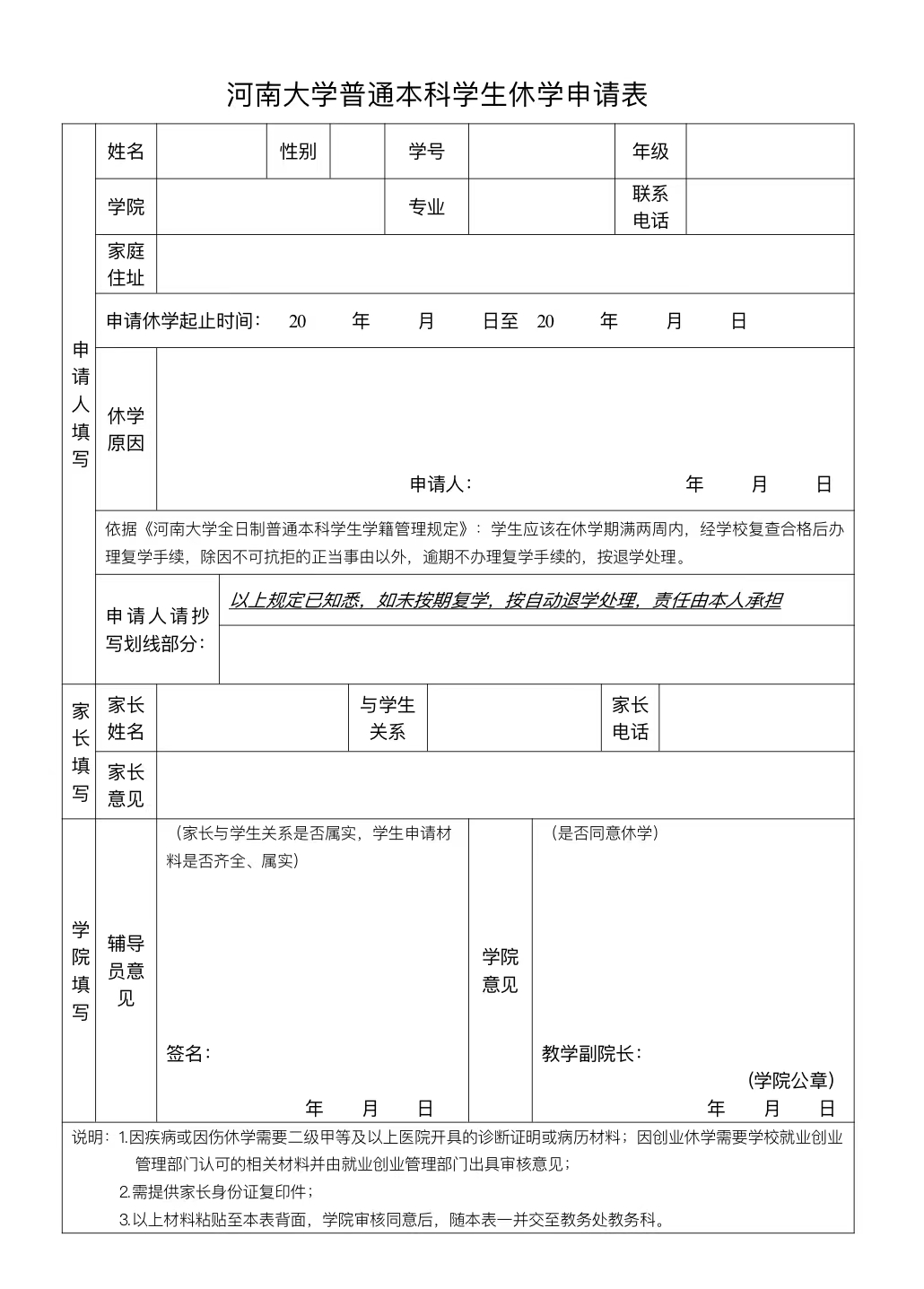 西瓜视频 普通本科学生休学申请表